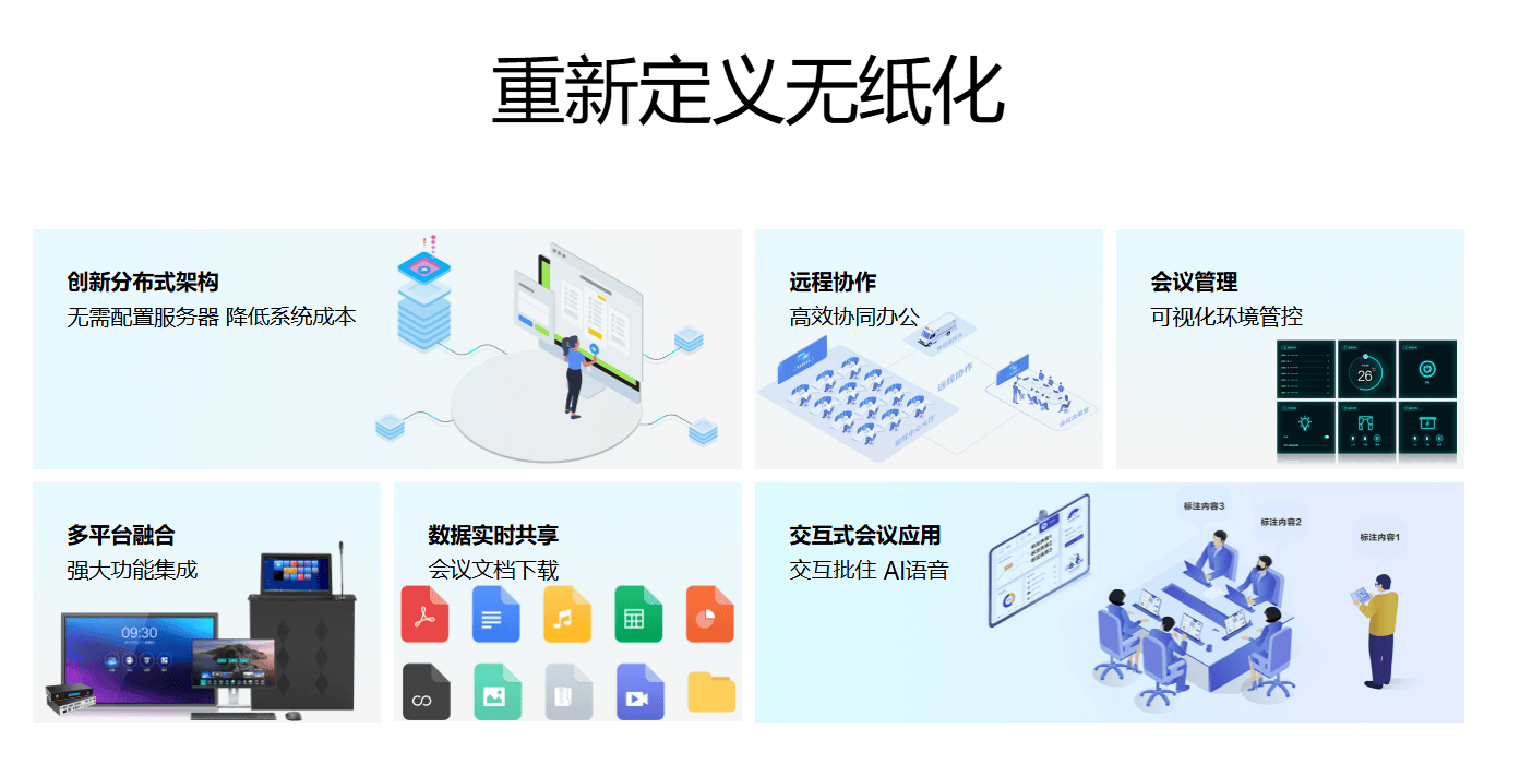 点击次数: AC米兰·(中文)官方网站-Milan brand-在数字化转型浪潮奔涌向前的当下,传统会议模式的低效、繁琐与高成本早已成为政企办公升级的掣肘。纸张的大量消耗、设备的复杂配置、跨区域协作的壁垒、会议交互的单一,让高效会商与快速决策成为奢望。讯维深耕智能会议领域,重磅推出分布式无纸化交互系统,以创新分布式架构颠覆传统,无需配置服务器,一站式替代传统无纸化会议方案,为政企单位打造更智能、更高效、更开放的全场景会议协作新体验,重新定义无纸化会议的未来。
