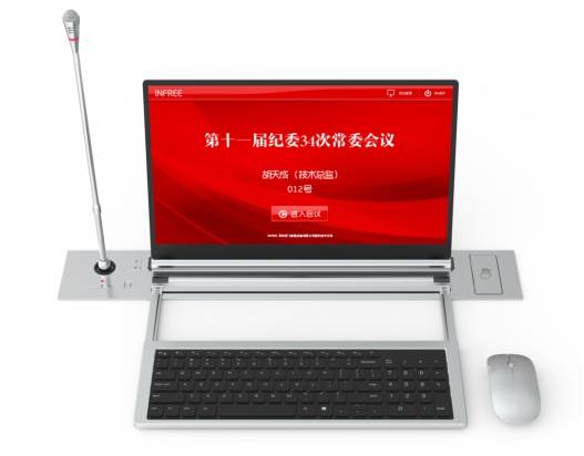 INFREE英飞全新一代无纸化升降一体机,以其对“人本体验”与“AI智能”的深度整合,重新定义高端会议场景的舒适与高效。产品设计哲学的核心是 “延伸人的感官” 。创新的伸缩式键盘与鼠标,将操控自由交还给用户,配合65度黄金视角的2.5D触控全贴合屏,以及可根据环境光自动调节的显示技术,从物理层面解决久坐会议带来的疲劳问题。一体成型的升降式设计,让所有组件在会后一键隐藏,瞬间还原桌面的整洁与大气。