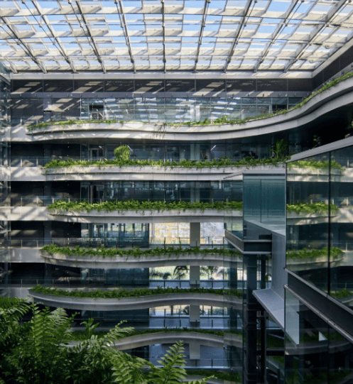 :大厦采用2A级装配式与外循环呼吸式幕墙,结合空中花园、中庭绿化等设计,实现建筑材料的全程可追溯与循环利用,入选联合国COP30案例集,成为全球绿色建筑典范。
